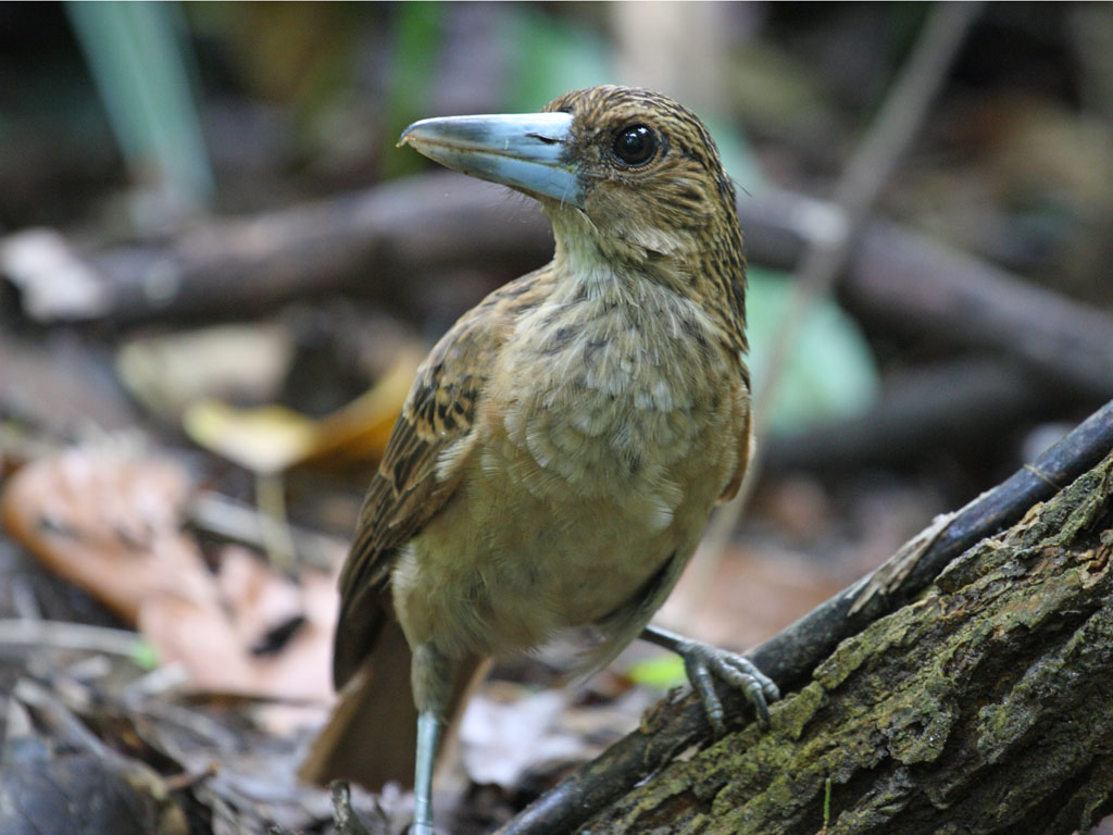 The Mountain Peltops is the larger species They both have hooked bills.