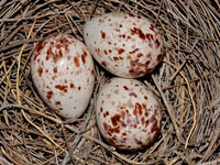 Butcherbirds are large songbirds, being between 30 and 40 centimetres (12 and 16 in) in length. Their color ranges from black-and-white to mostly black with added gray plumage, depending on the species. They have a large, straight bill with a distinctive hook at the end which is used to skewer prey. They have high-pitched complex songs, which are used to defend their essentially year-round group territories: unlike birds of extratropical Eurasia and the Americas, both sexes sing prolifically.Butcherbirds are insect eaters for the most part, but will also feed on small lizards and other vertebrates. They get their name from their habit of impaling captured prey on a thorn, tree fork, or crevice.