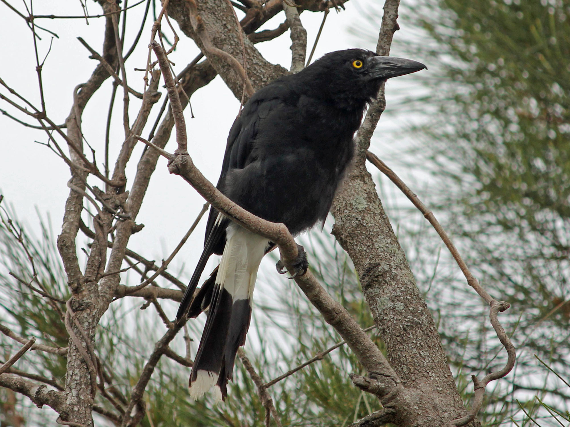 Currawongs are similar to Australian crows, magpies, and raves. They are easily distinguished by their yellow eyes, in contrast to the red eyes of a magpie and white eyes of Australian crows and ravens.