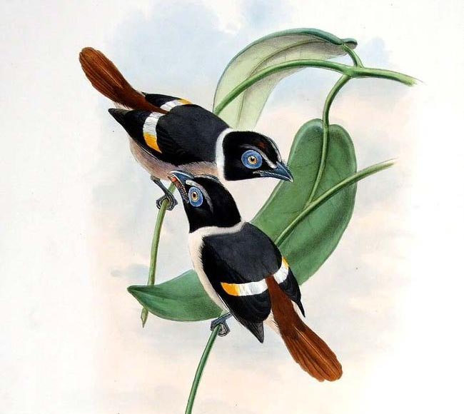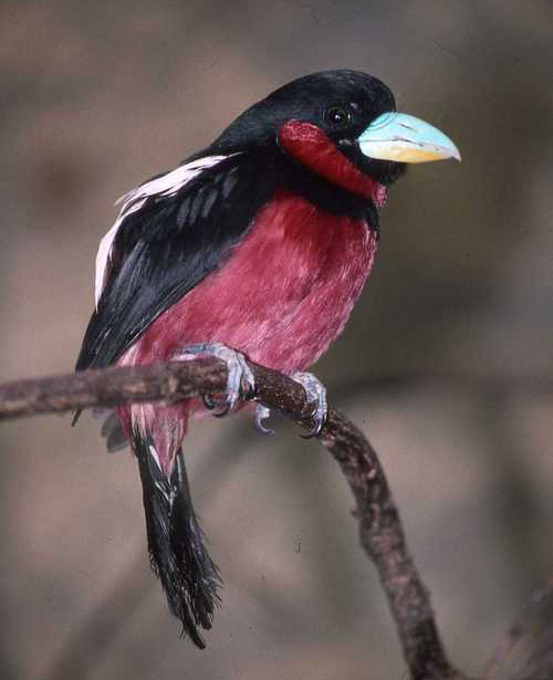 Broadbill,_Silver-breasted Serilophus lunatus Found: southeast Asia, Indonesia, Malaysia