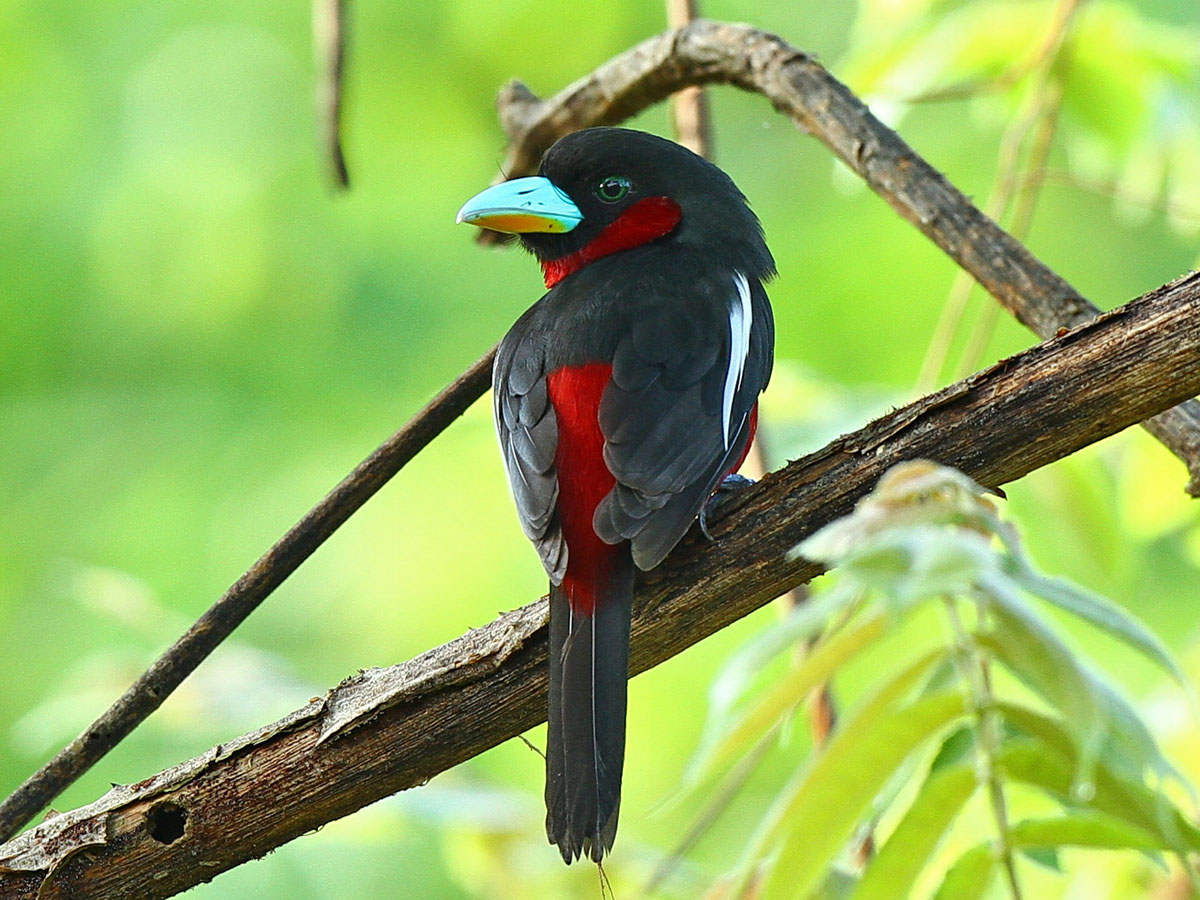 Broadbill,_Black-and-red Cymbirhynchus macrorhynchos Found: Myanmar, Thailand, Vietnam, Indonesia, Malaysia