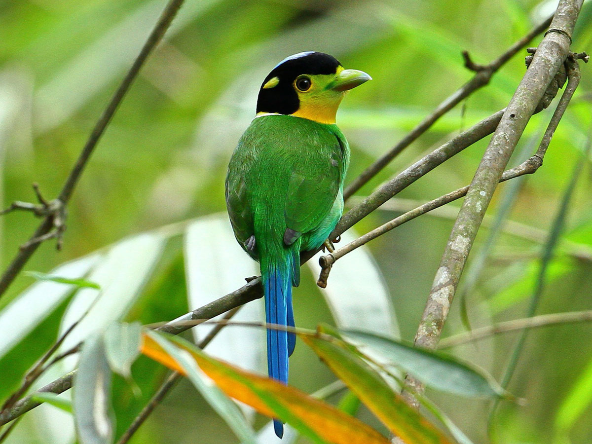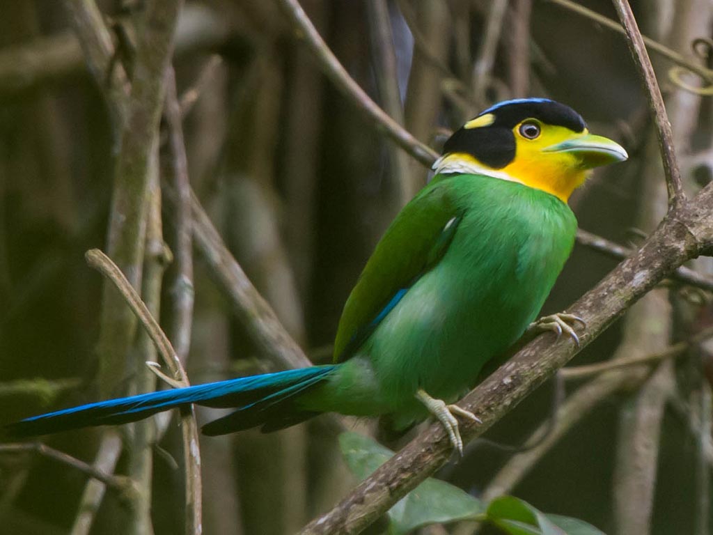 Broadbill,_Long-tailed Psarisomus dalhousiae Found: southeast Asia, Indonesia, Malaysia