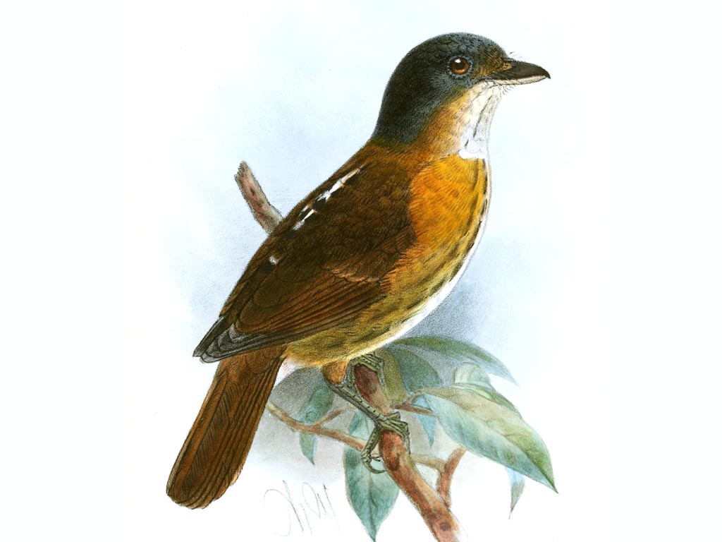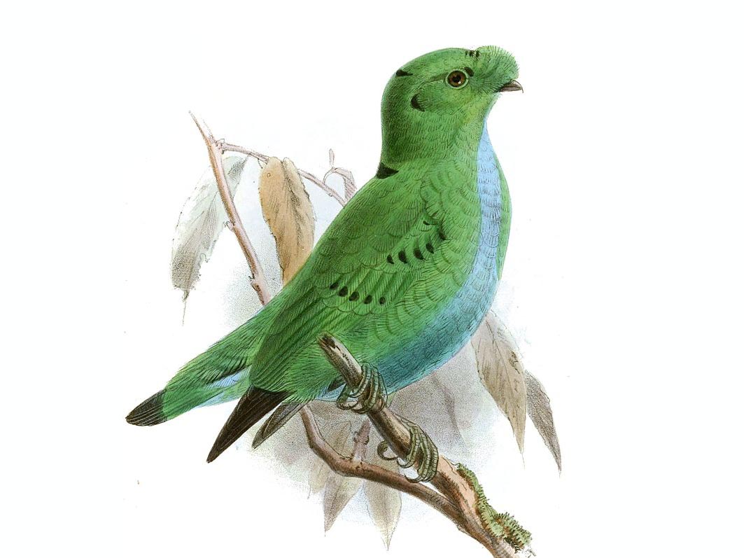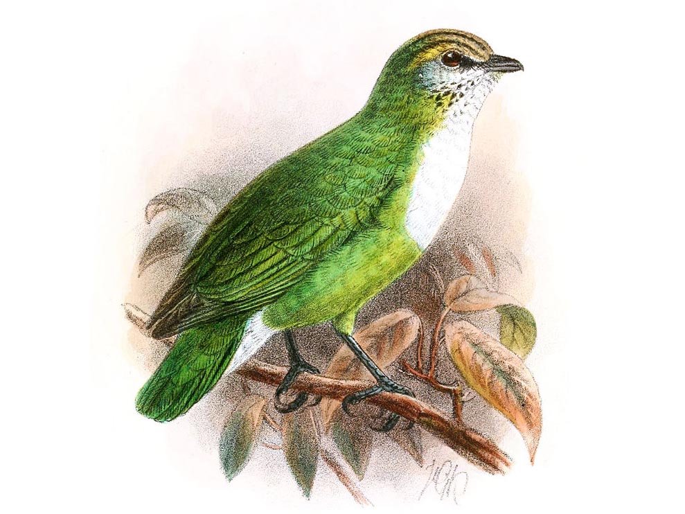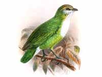 Broadbill,_Whitehead's Calyptomena whiteheadi Found: Borneo