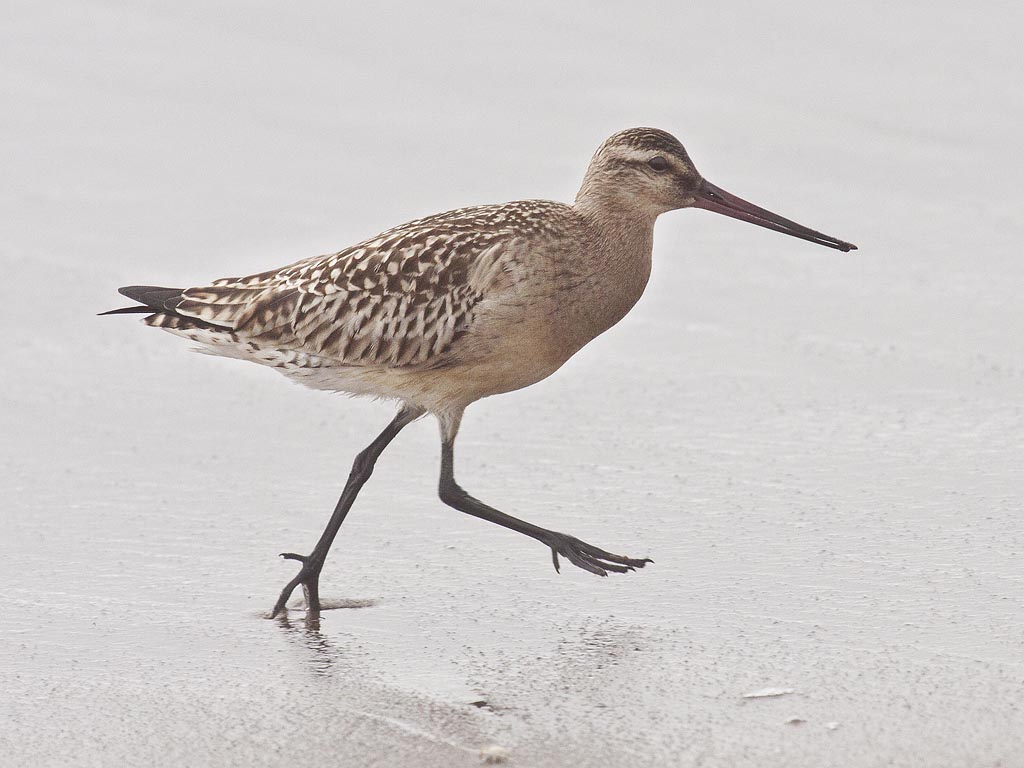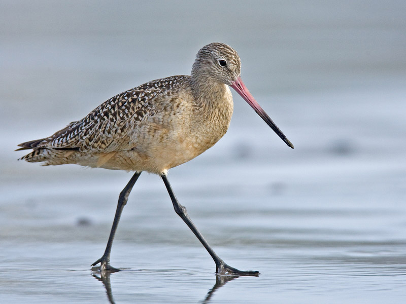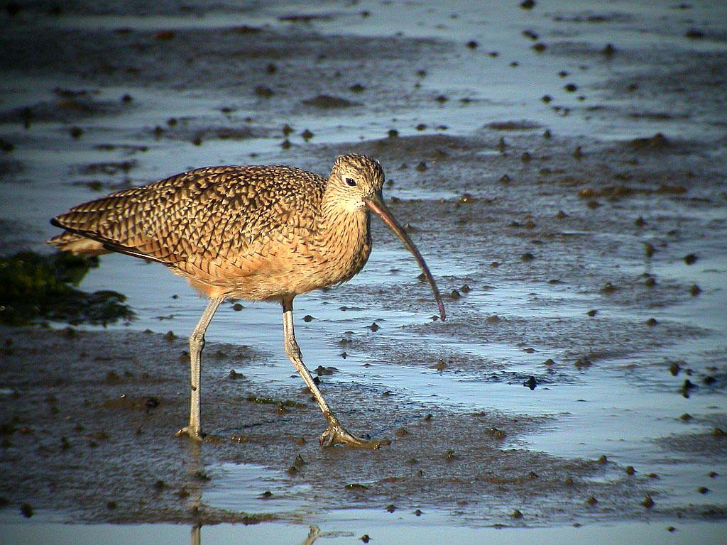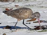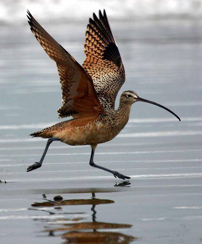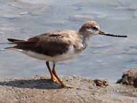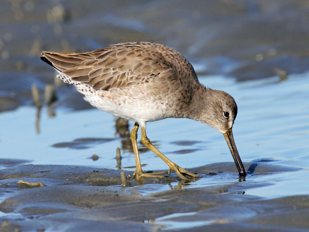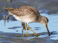Shorebirds walk along shores probing for food with their thin sensitive bills. Bill length varies considerably so differing species can work the same shore and obtain different