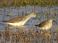 1) Greater Yellowlegs compared to Dowitchers 3) Greater and Lesser Yellowlegs