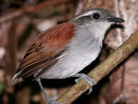 Gnateater,_Ash-throated Conopophaga peruviana Found: Bolivia, Brazil, Ecuador, Peru
