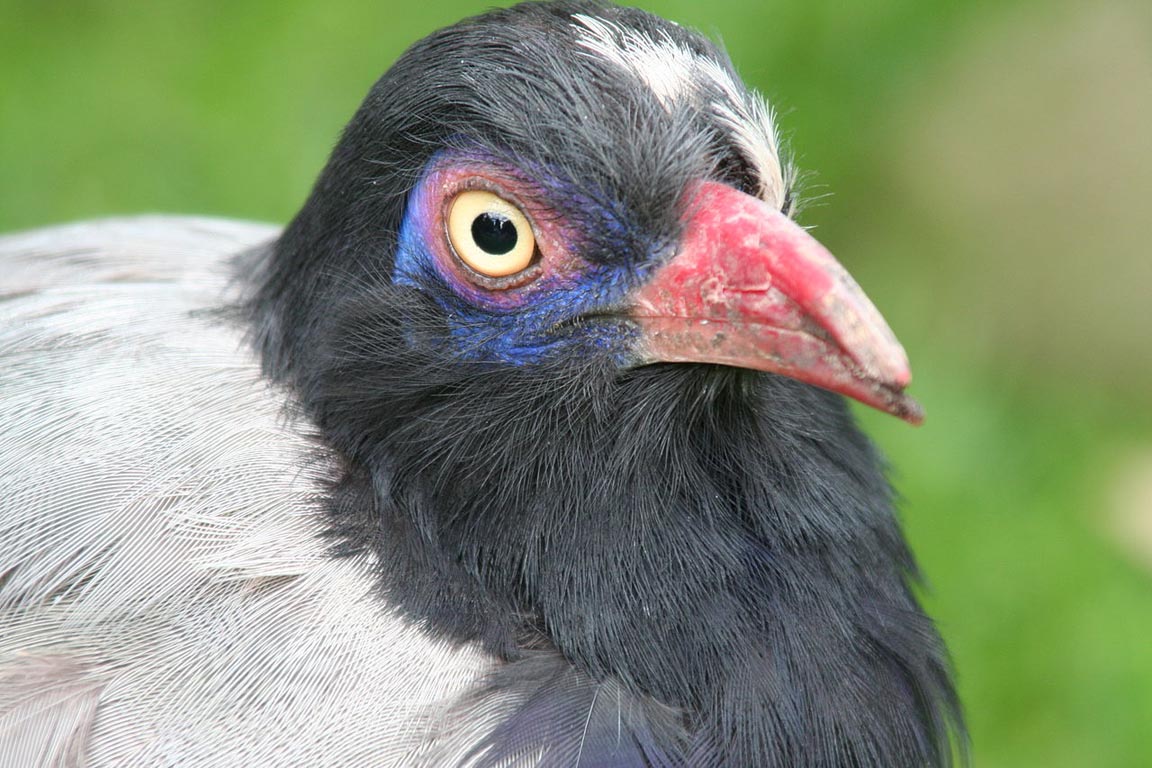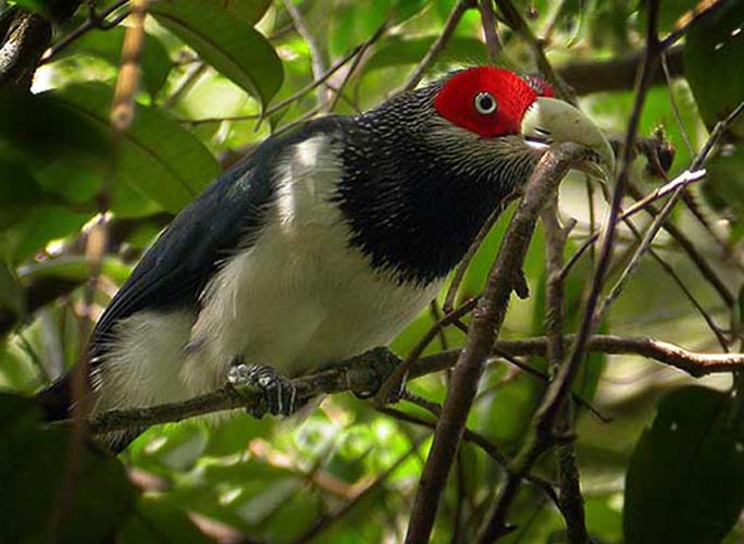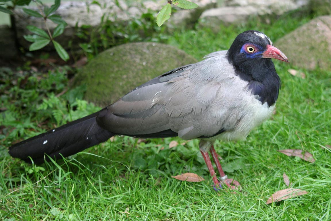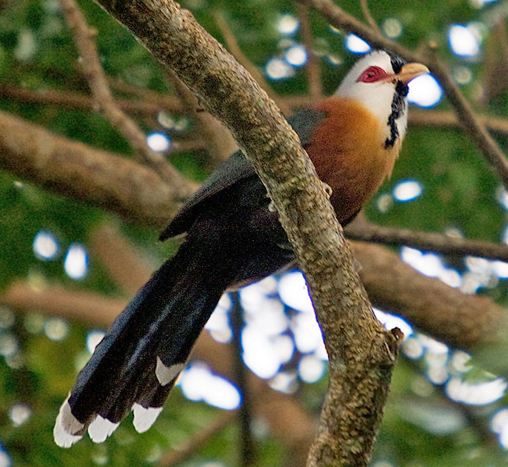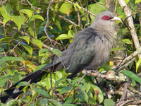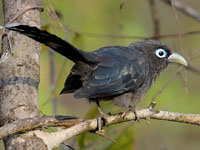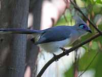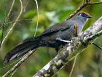 These cuckoos are found on Madagascar. They have brightly colored bare skin around the eyes.