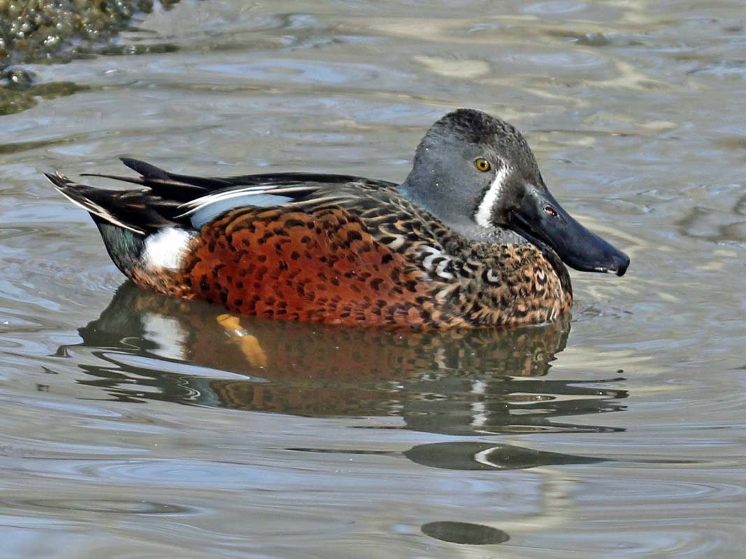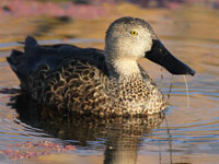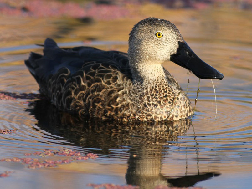 The shovelers have very long bills. Their wide-flat bill is equipped with small, comb-like structures on the edge of the bill that act like sieves, allowing the birds to skim crustaceans and plankton from the water's surface. The genus contains many species that are termed teals, but they are not included in this article. See
