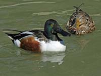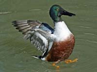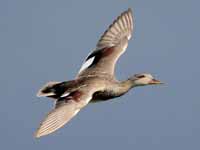 The members of subfamily Anatinae are refered to as dabbling ducks because they do not totally submerge when feeding and are often seen with just their rears showing as they search for food. Because of their feeding method, dabbling ducks have evolved to be more buoyant than diving ducks. The dabbling duck only rarely dives. In fact, the stiff-tailed ducks that do dive and yet have been placed in Anatinae, is placed by some (including this author) in its own sub-family.