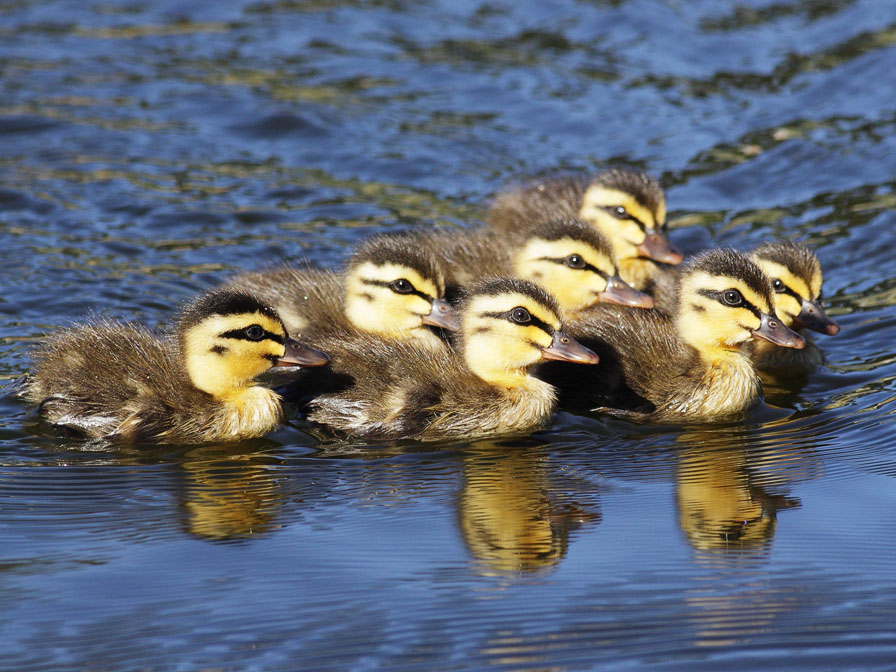 1) Ducklings 2) Pair (male on left) 3) Female 4) Male