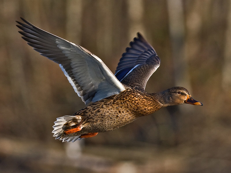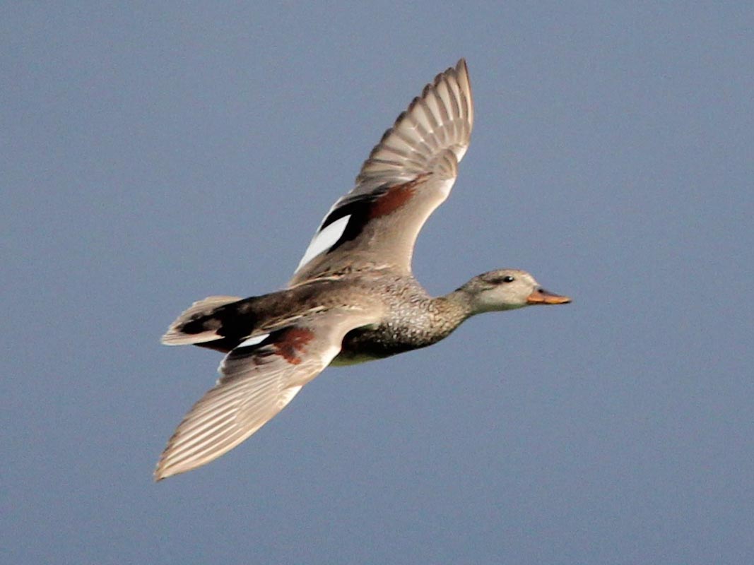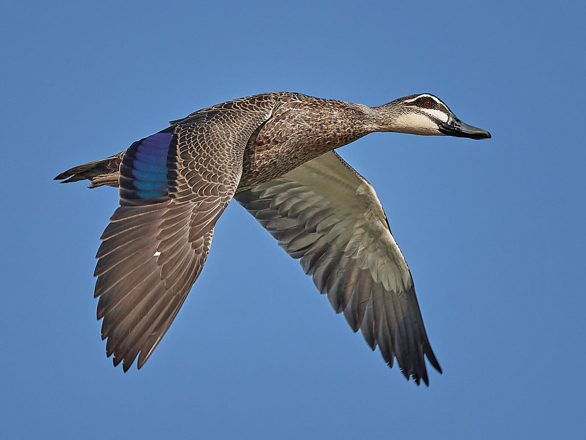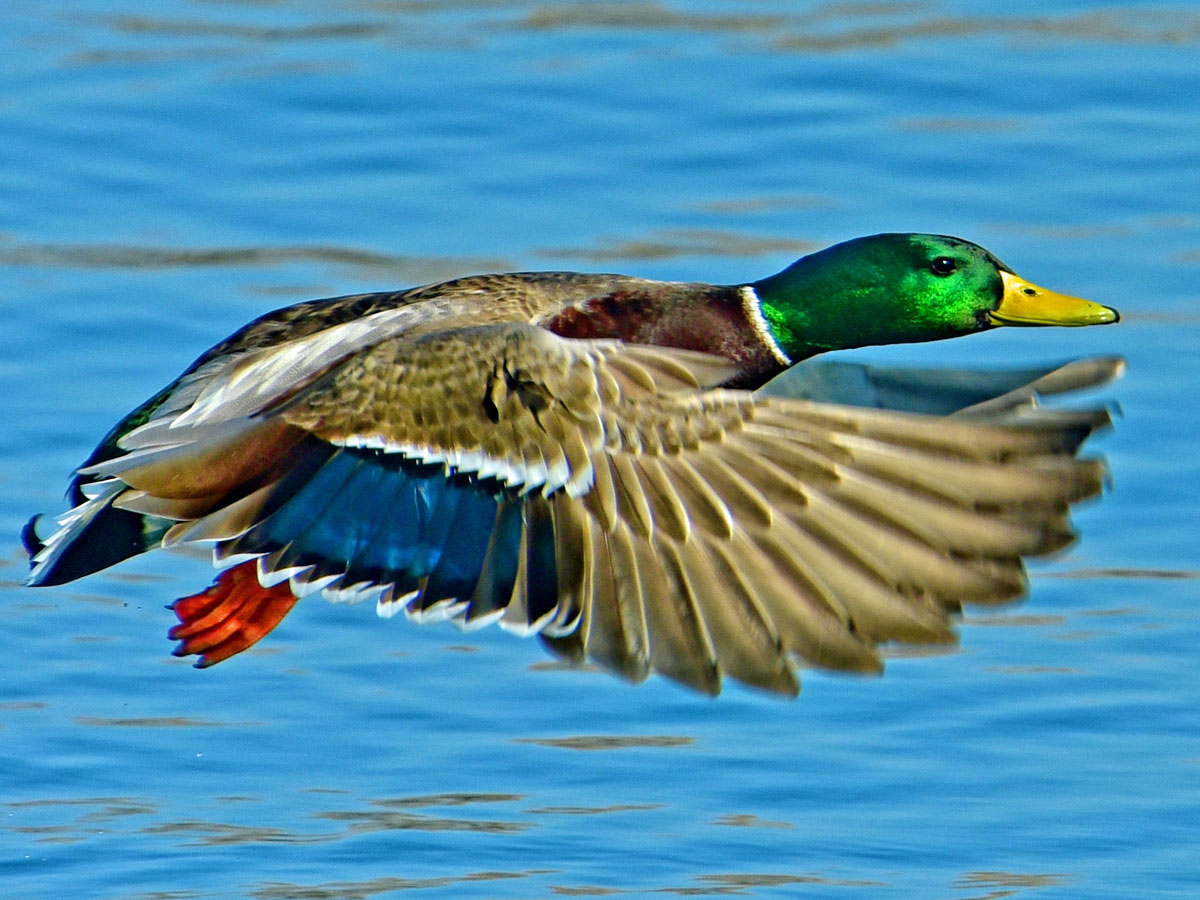 Not all birds have speculums. The dabbling ducks have especially vivid speculums many of which are iridescent. The speculum is best seen while the duck is in flight; when the duck is at rest the speculum may be partially or completely hidden. Very often careful observation of a duck's speculum is sufficient to identify the species. Pay attention not to just the main color of the speculum, but also the top and bottom borders. These borders are often referred to as the "leading edge" and "trailing edge" respectively.