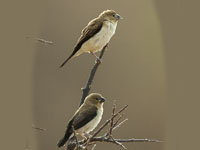 These species prefer dry grassland. They have buff or brown upperparts, pinkish upperparts, black tail.