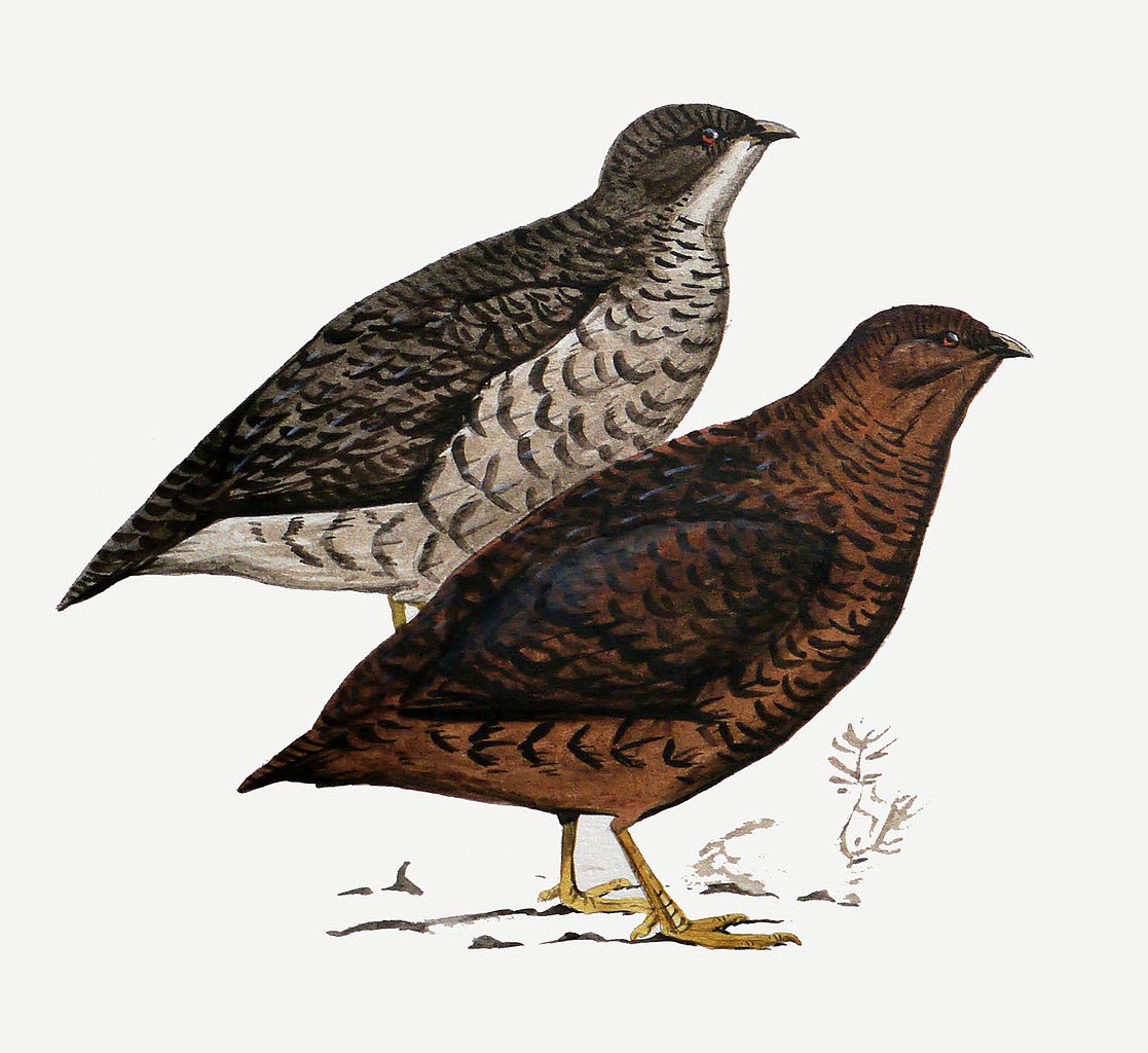Phasianidae: francolin, grouse, partridge, pheasant, Old World quail.