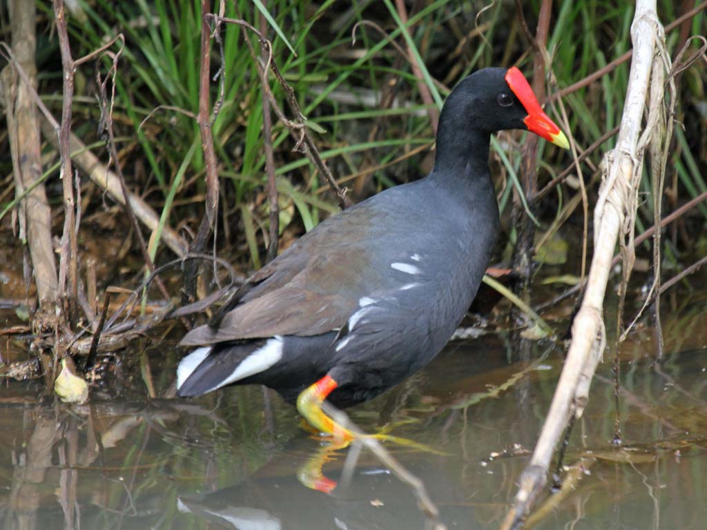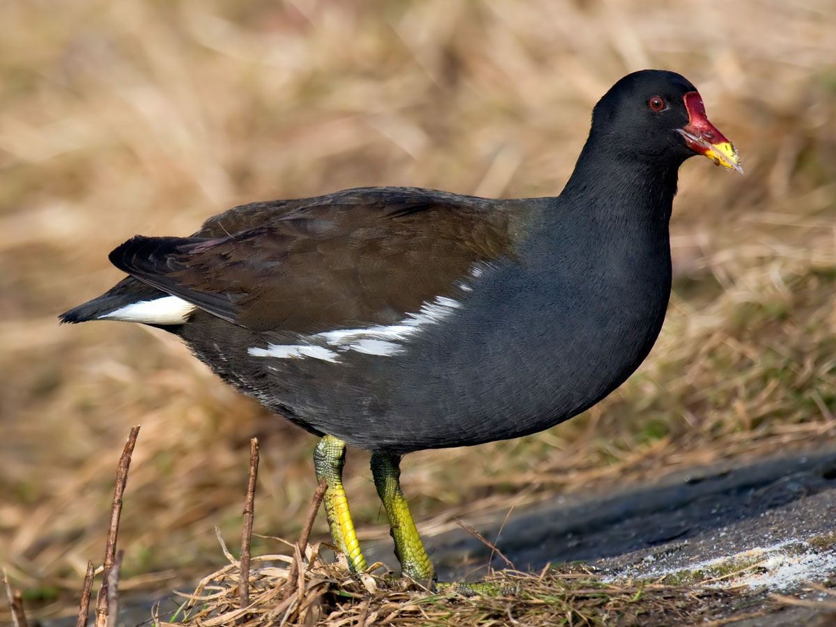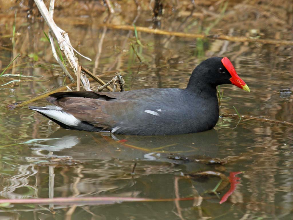 Moorhen,_Eurasian Gallinula chloropus chloropus Found: Europe, Asia