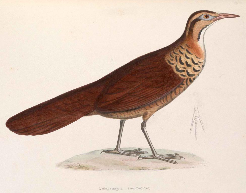 Mesite,_White-breasted Mesitornis variegatus Found: Madagascar