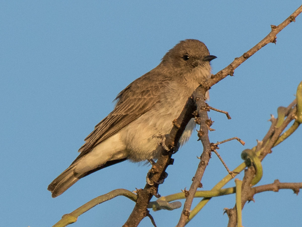 These African honeybirds have greyish upperparts, whitish-grey underparts, and small flycatcher-like bills. They are among the smallest of the honeyguides. They are called honeyguides as they belong to the honeyguide family Indicatoridae, but they are also called honeybirds as they probably do not eat beeswax. They often catch flying insects in the air like a flycatcher.