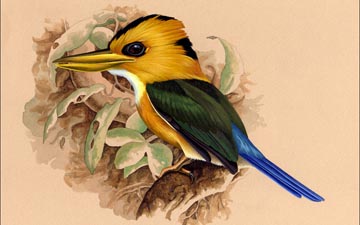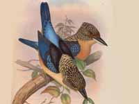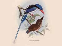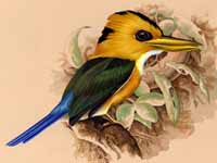 These kingfisher are in Southeast Asia including Indonesia, Malaysia, and the Philippines. They are found in dense forest habitat which makes them difficult to observer. Their diet consists of beetles and other small invertebrates. They are fairly large kingfishers with a length between 20 and 30 cm. Not much is known about their nesting habits, but it seems that some create tunnels in arboreal termite mounds and other creat earthen tunnels.