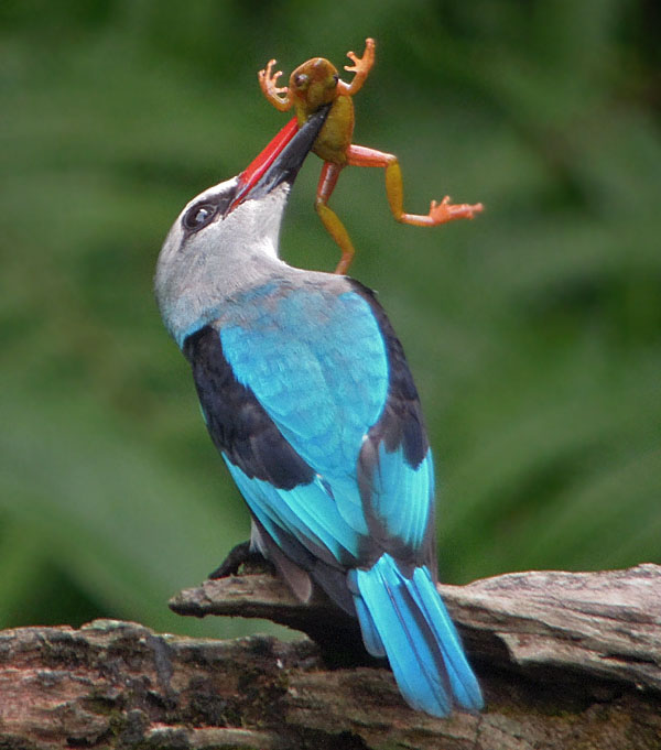 “sit and wait” predators of small ground animals including large insects, rodents, snakes, and frogs, but some will also take fish. They are found mostly in Sub-Saharan Africa. Like other kingfishers, the Halcyon kingfisher are cavity nesters. Some excavate tunnels in a slope such as a banking or gulley, other use an active termite nest which is usually located in a tree, but could also be on the ground. All of the species in this genus are listed as Least Concern.