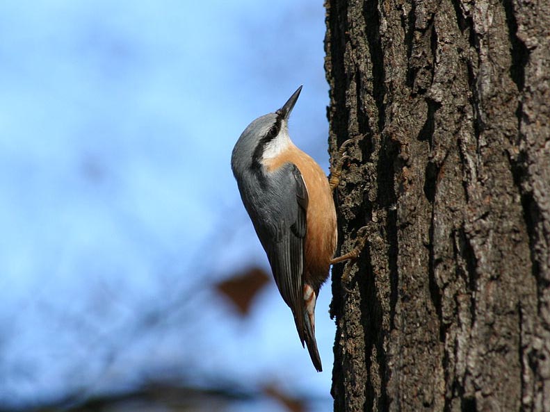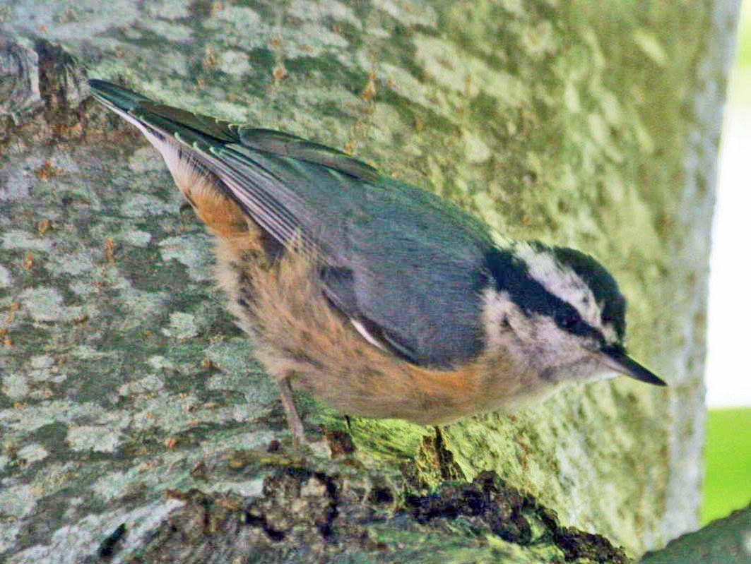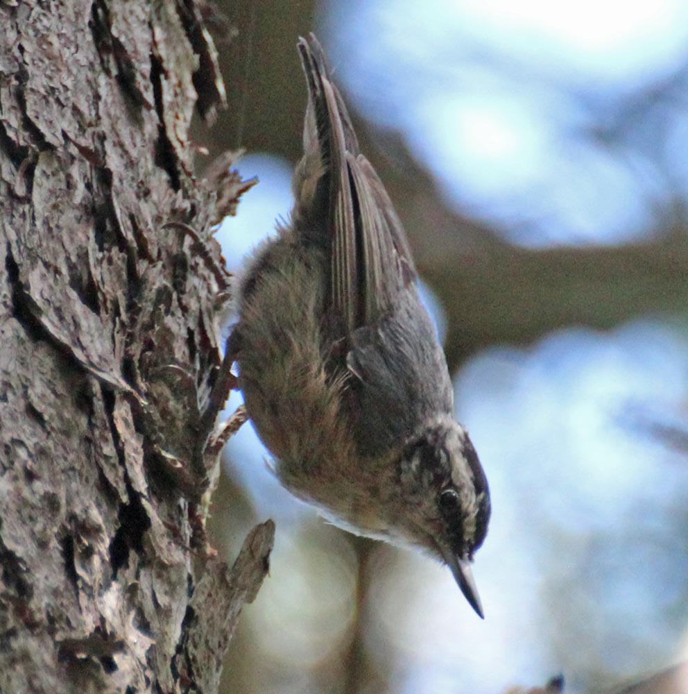 Nuthatches usually head down the tree; Creepers usually head up the tree.