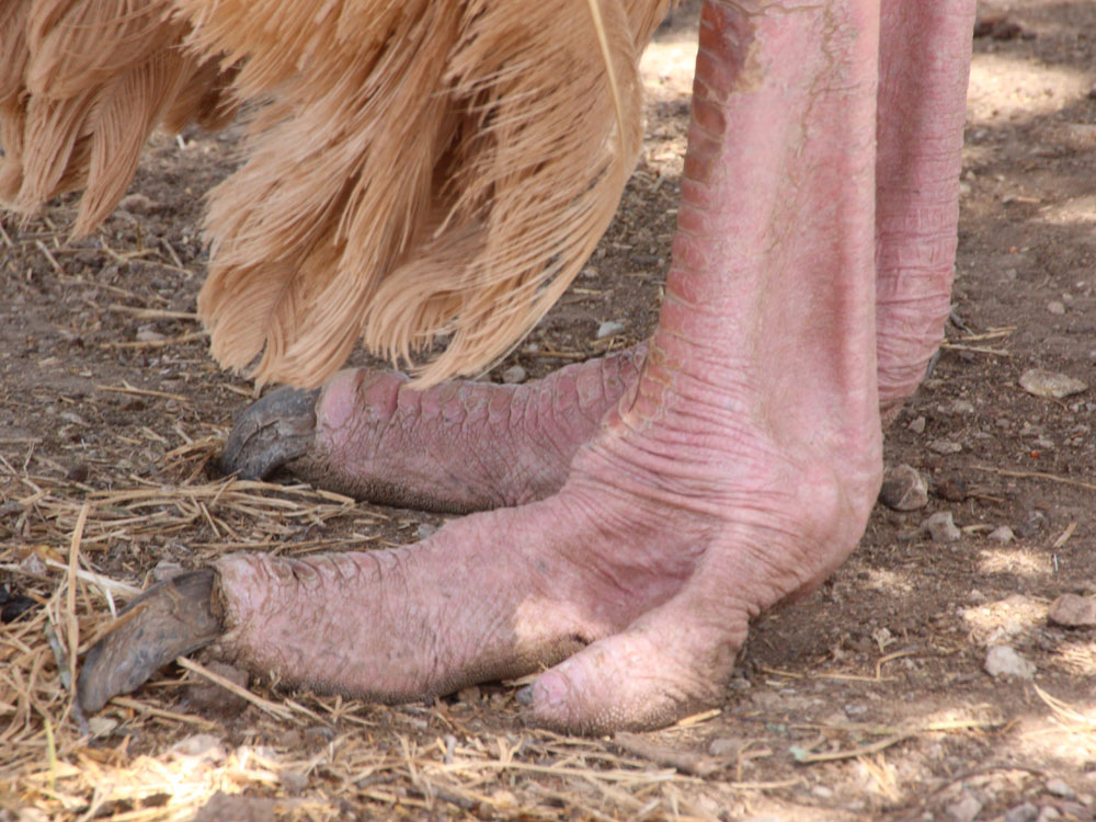 Their top speed while running is about 70 km per hour which makes them the fasted bird on land. When the make turns at high speeds the use their wings for stability. Unlike all the other ratites which have 3 toes, the ostrich only has two. One of those toes is much bigger than the other and resembles a hoof. The kick of an ostrich with its clawed foot can be lethal, even to a lion.