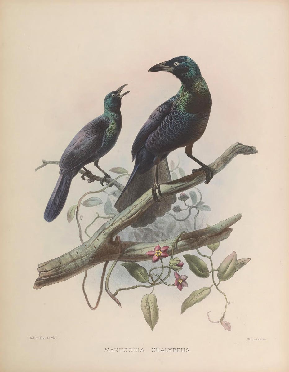 Manucode,_Crinkle-collared Manucodia chalybatus Found: New Guinea