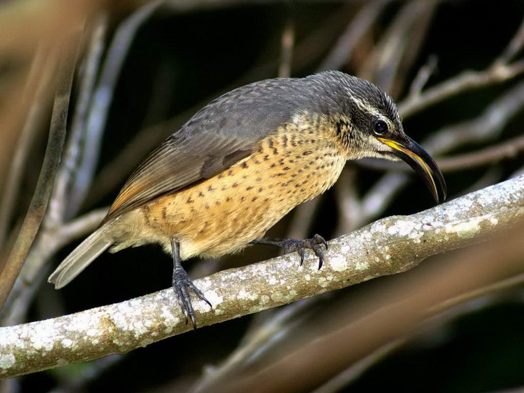 Sicklebill,_Black-billed Drepanornis albertisi Found: New Guinea