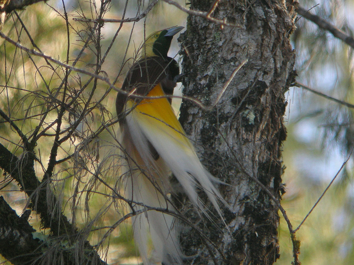 The majority of the species from the Bird of Paradise family Paradisaeidae are found in New Guinea. A few are found islands and in Australia. The males tend to have spectacular plumage. Their habitat