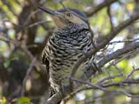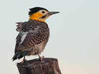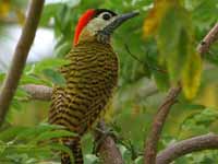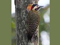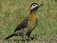 Colpates New World woodpeckers typically have a brown or green back and wings with black barring, and beige to yellowish underparts with black spotting or barring. There are usually colorful markings on the head. They range in size from the grey-crowned woodpecker with a length of 17 cm to many