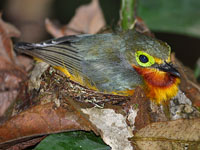 The nest is a small neat cup low in a tree or bush.