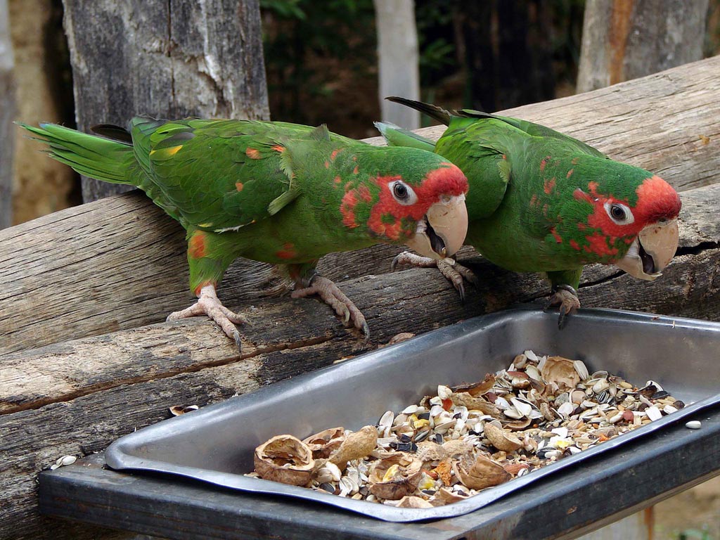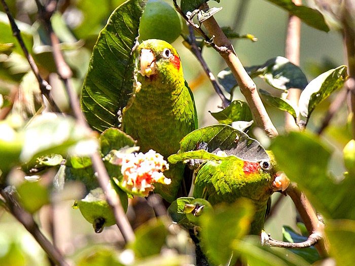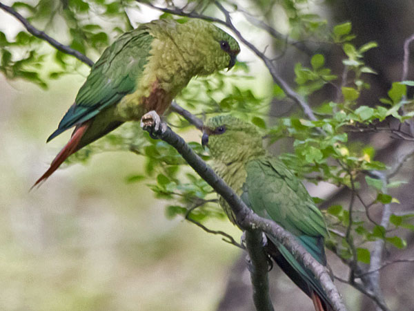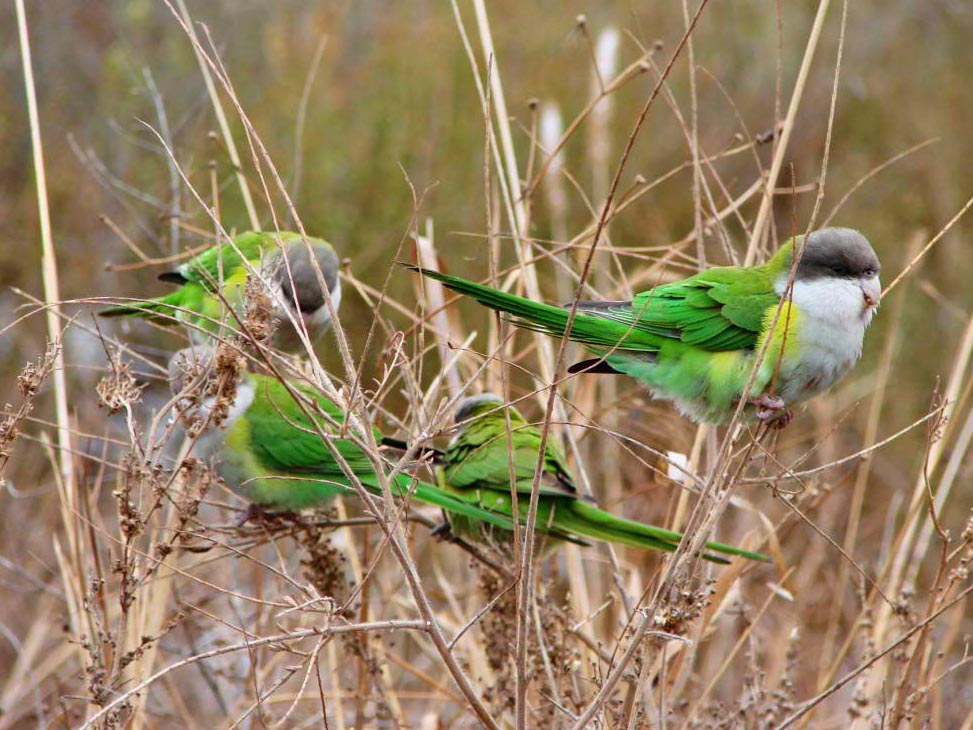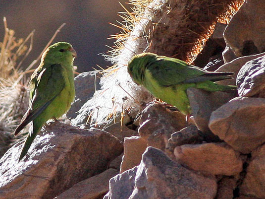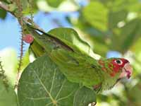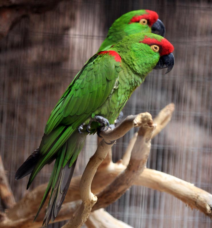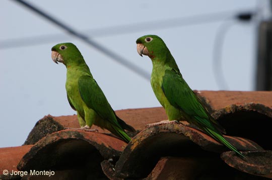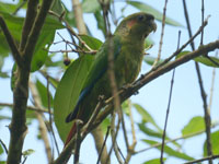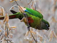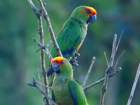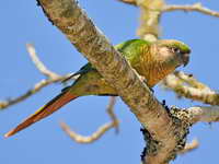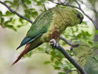 These mainly green parakeets are found in Central and South America. Some occur naturally in Mexico and some have been introduced to North America.