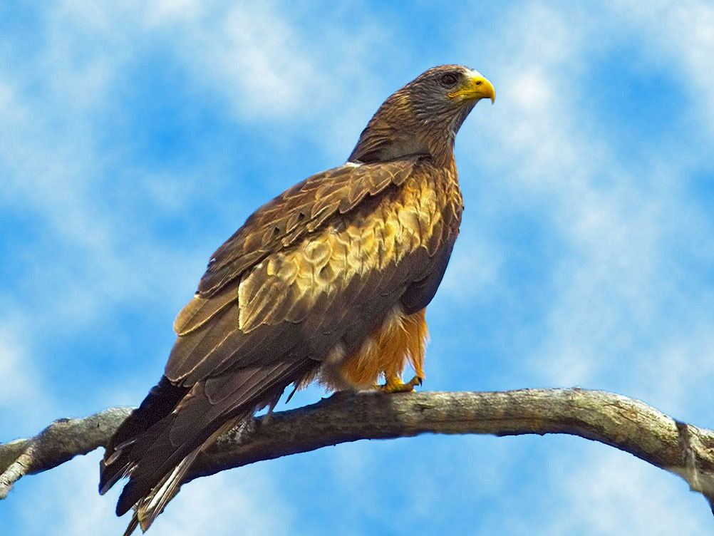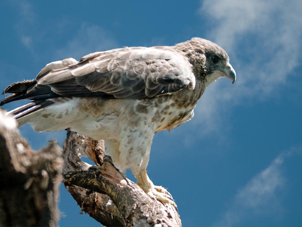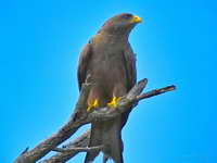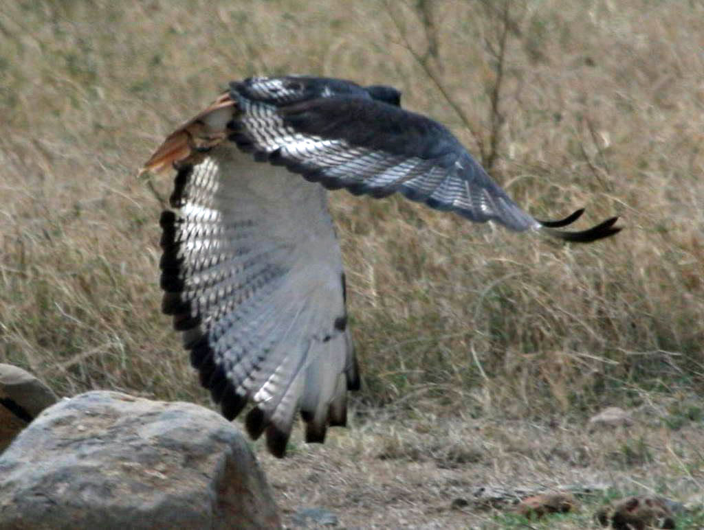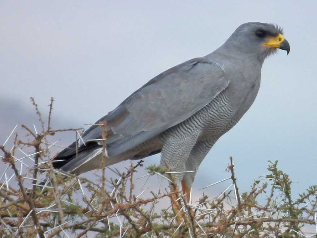 The chanting goshawks, long-tailed hawks, are found in Africa. The name refers to the melodious chanting they do during breeding season. They mainly hunt from a tree perch.
