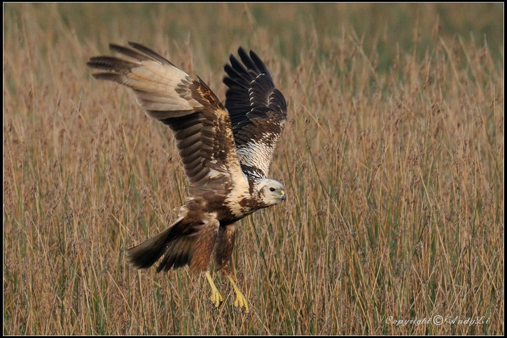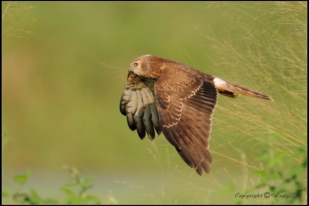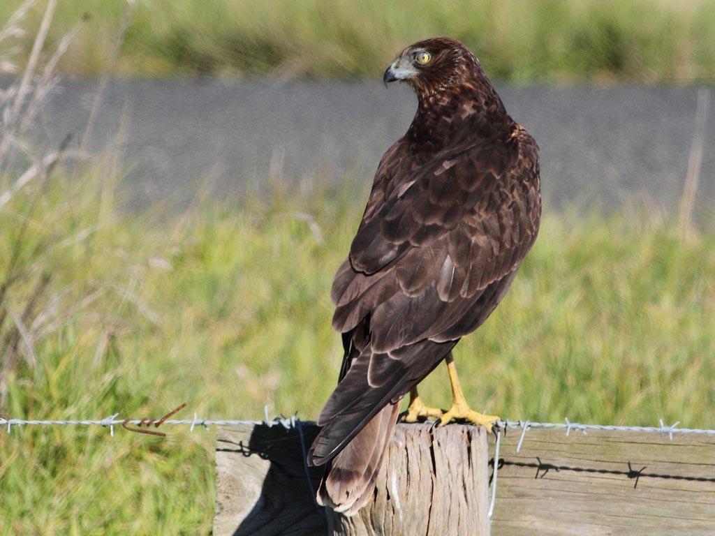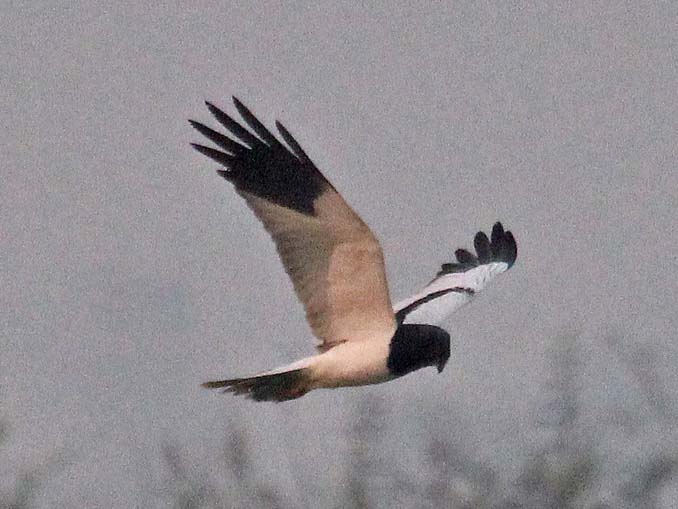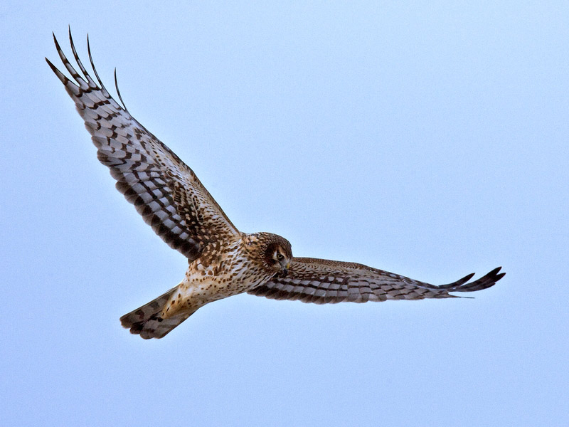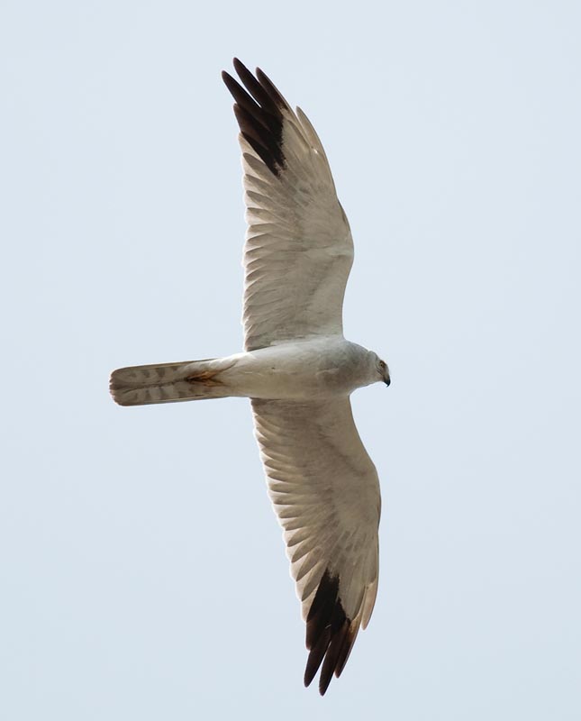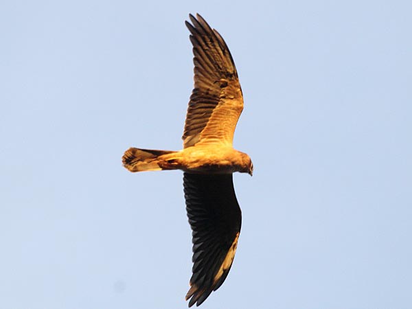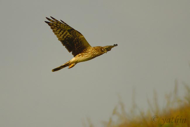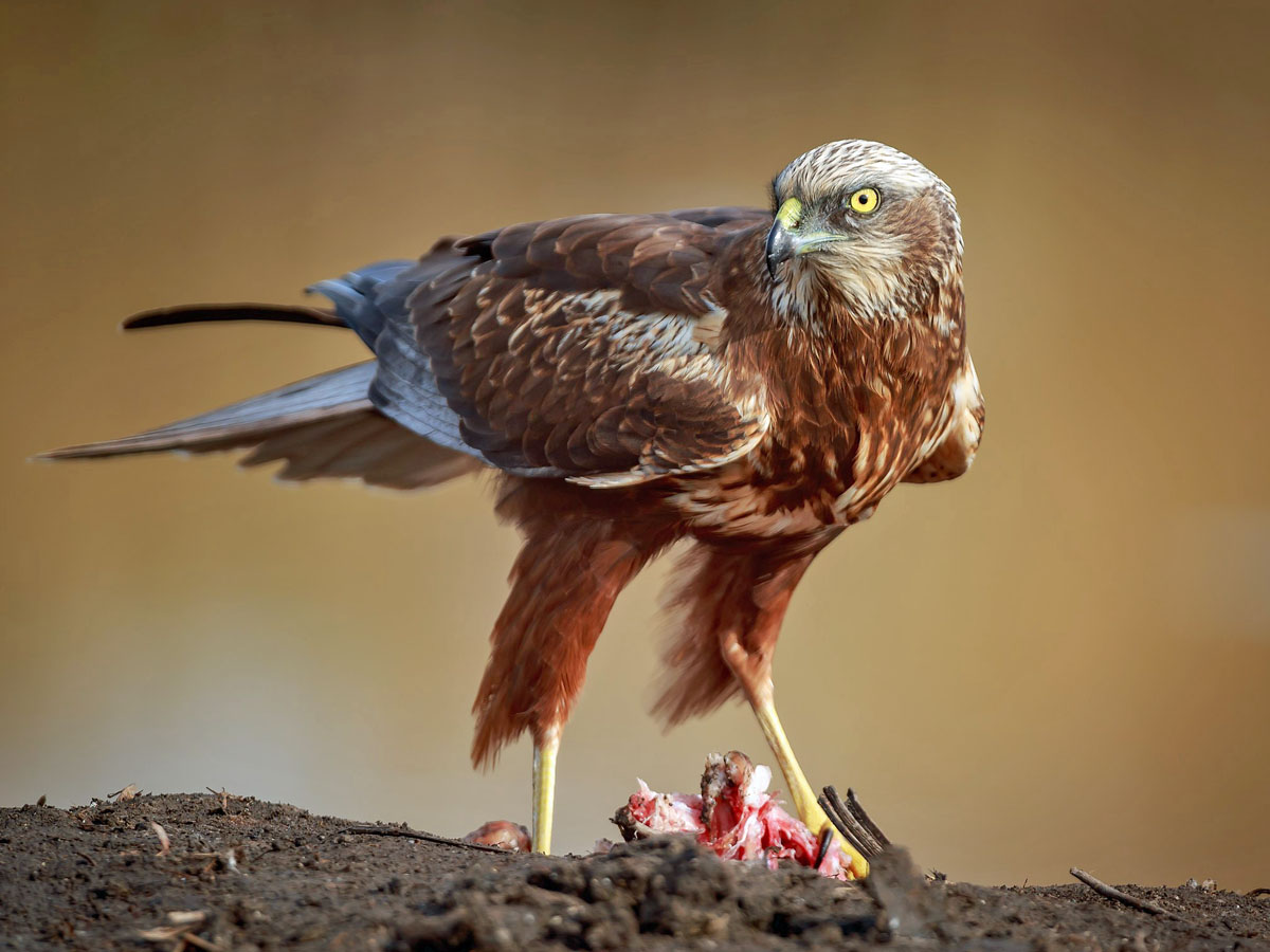 harriers. The mostly hunt by flying low over open ground such as grassland or marshes, feeding on small mammals, reptiles, or birds. These harriers have a slim body, narrow wings and a long tail. Harriers nest on the ground. Males and females have distinct plumage.