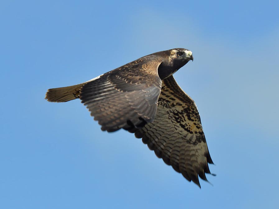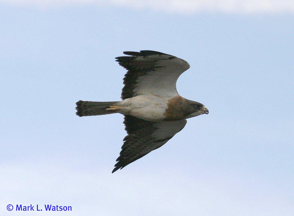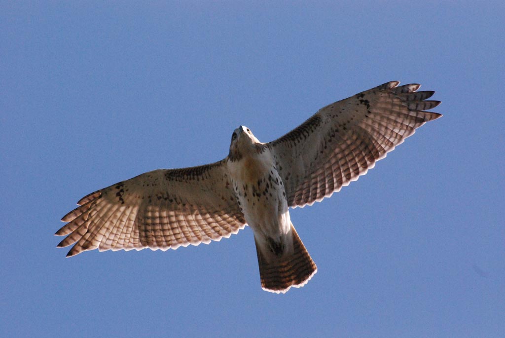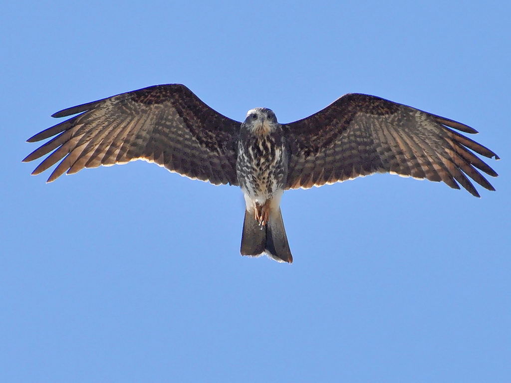 Raptors, especially those that stalk prey from the air, tend to have dark upperparts and lighter underparts. Looking down from above a raptor, the dark upperparts tend to blend in with the ground. While looking from below, the light underparts blend better with the sky.
