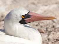 Family Sulidae is comprised of the gannets and boobies. One way to tell gannets from boobies isgannet feathers occur forward of eyes; booby feather stop at eyes.