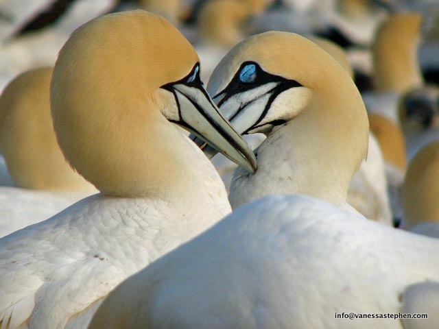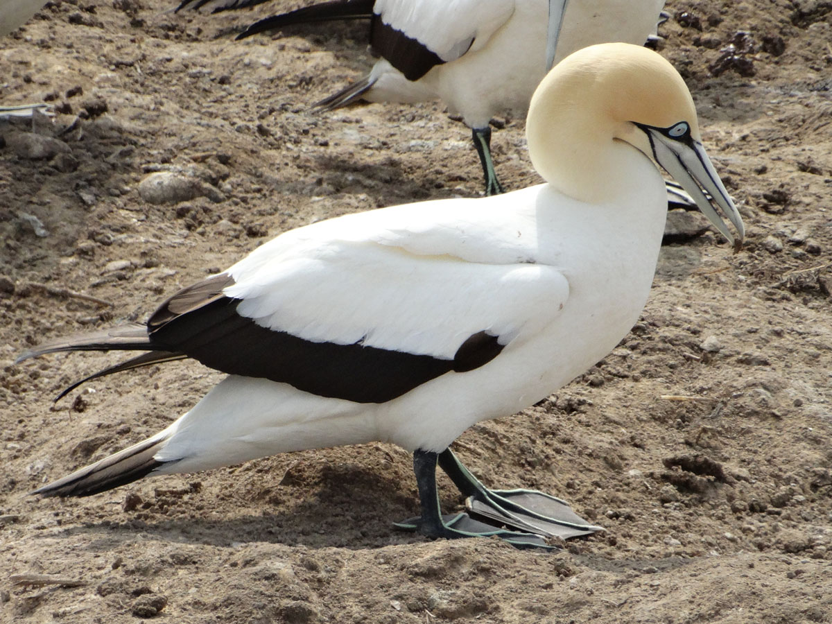 The bill has no external nostrils as they would be problematic in a dive; instead the nostrils are in the mouth. Gannets are colonial breeders and it is not uncommon for the colony to number in the thousands.