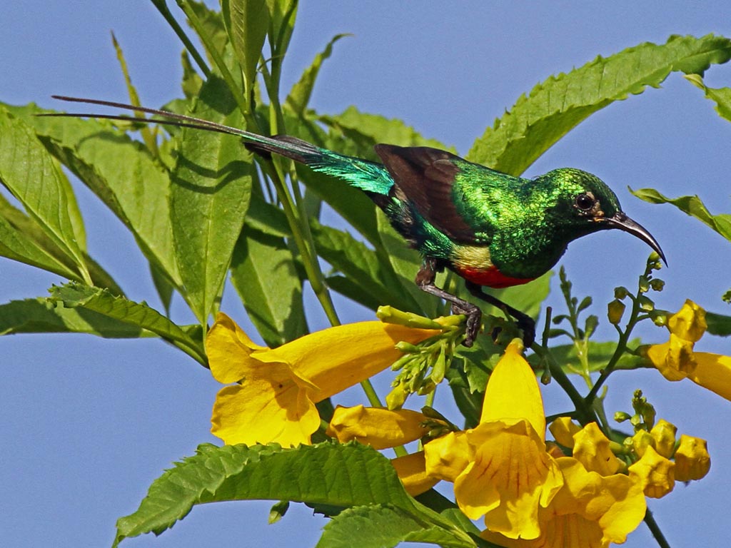 Sunbird, Mayotte Cinnyris coquerellii Found: southeast Cosomos Islands (east of Africa in Indian Ocean)