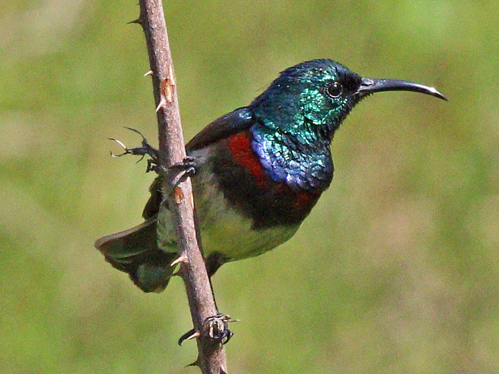 Sunbird,_Olive-bellied Cinnyris chloropygius Found: Africa