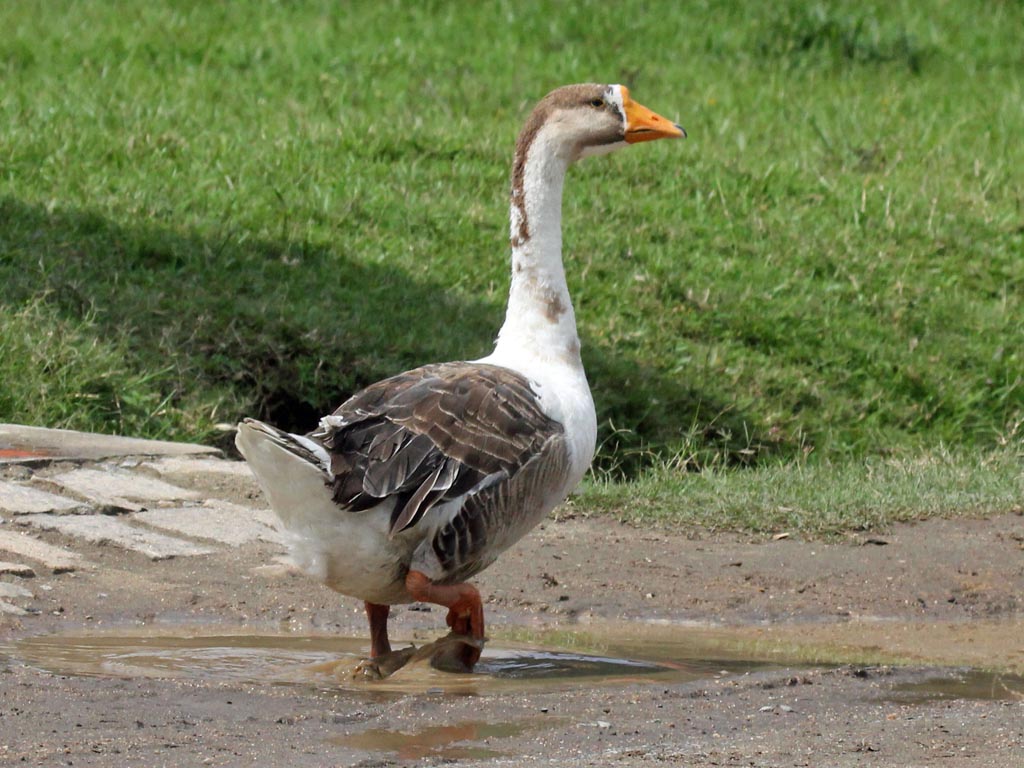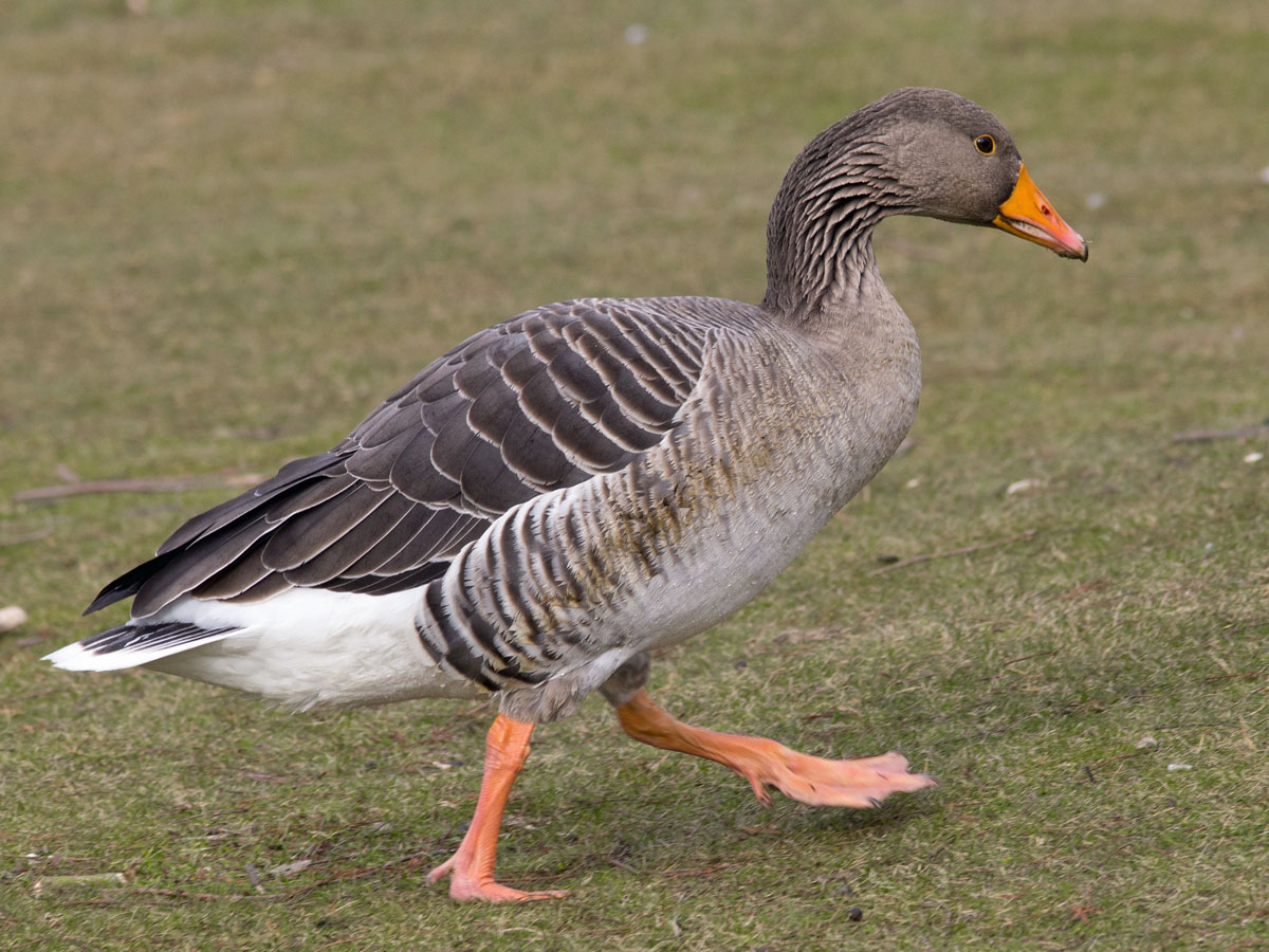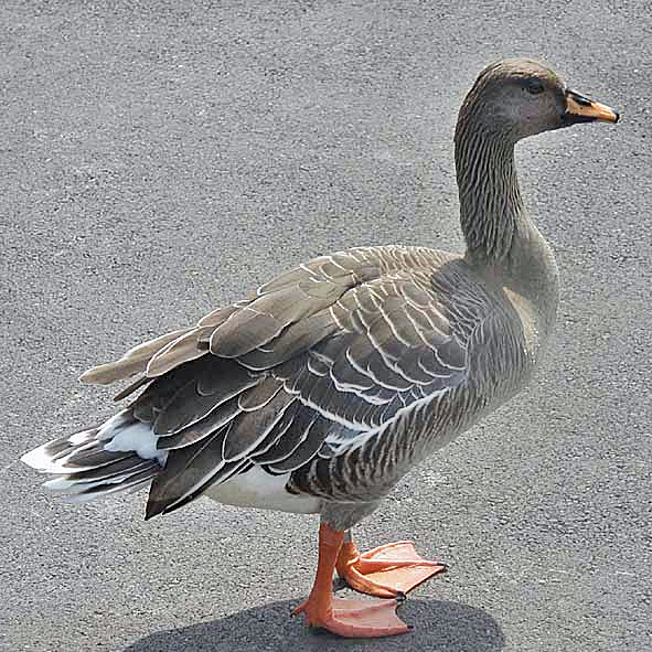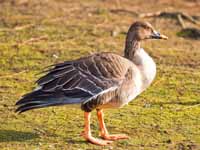 The "grey" geese of genus Anser are closely related to the "black" geese in genus Branta. Anser geese have pink or orange legs and feet;