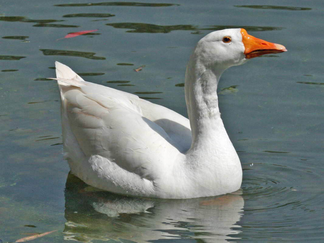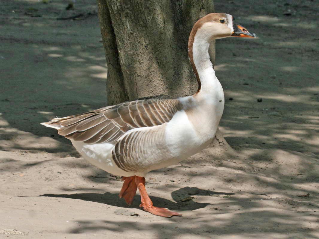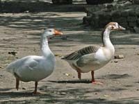 Geese are large waterfowl, larger than ducks and smaller than swans. They are amount the earliest animals that were domesticated, at least 3000 year ago in Egypt. and perhaps sooner. The early domestication must have been aided by geese imprinting on its caregiver at birth. Thus the new goosling would treat their handler