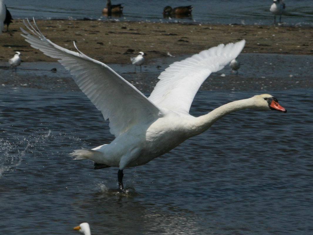 Swans are the largest waterfowl, substantially larger than the other members of their subfamily, geese.They wingspans are over 3 m (10 ft). Hundreds of years ago they used to be considered a luxury food reserved for royalty; it was then taboo for commoners to hunt swan. In the present day that feeling of taboo is renforced by their beauty and their perceived scacity. "Perceived" scarity because in some places the swan population has increased to the point where they are pests. While it may seem logical to allow swan hunting in such cases, most national or local govermentss still protect swans.