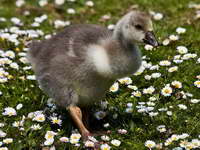 Many geese species spend most of their tme on land. But they often retreat to water if they feel threated. With their webbed feet thet are excellent swimmers.