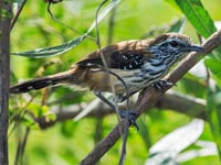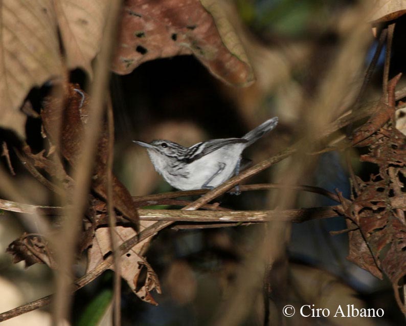 Antwren,_Stripe-chested Myrmotherula longicauda Found: Bolivia, Columbia, Ecuador, Peru
