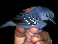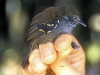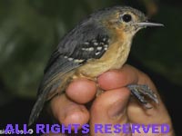 Antwren,_Roosevelt Epinecrophylla dentei Found: Brazil