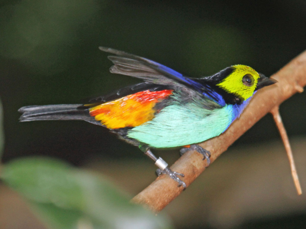 Tanager,_Opal-crowned Tangara callophrys Found: centered in Peru and surrounding Bolivia, Brazil, Columbia, Ecuador,
