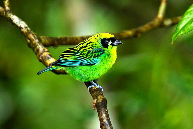 Tanager,_Emerald Tangara florida Found: Costa Rica, Panama, Columbia, Ecuador
