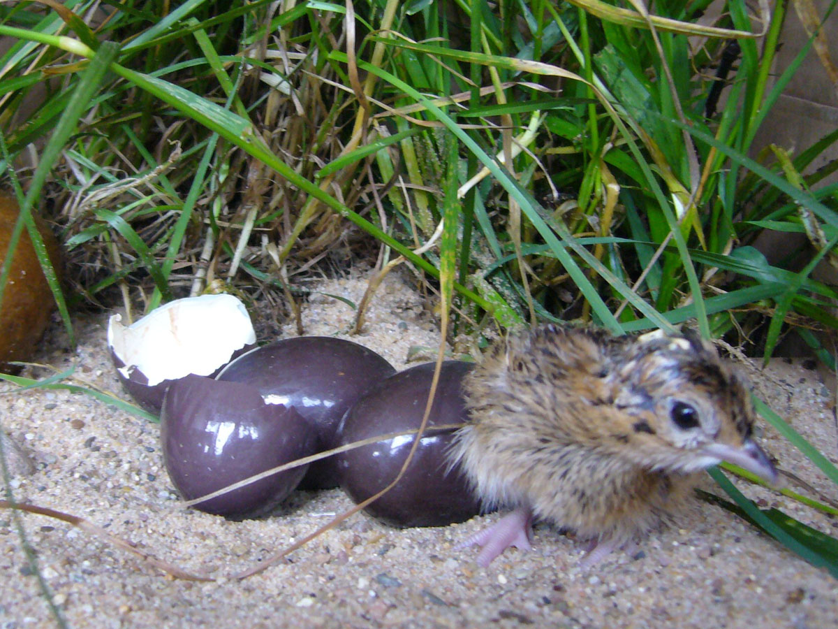 The male tinamou is caregiver for the young.