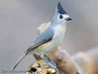 The titmouse are found in North America, They have grey upperparts and white or grey underparts. All have a significant crest. They eat insects, seeds, nuts, and berries. They nest in cavities which are usually in trees. They do not excavate their own cavities and often used prior woodpecker cavities. They line their cavities with soft material such as moss. The titmouse species are 12 to 16 cm long.