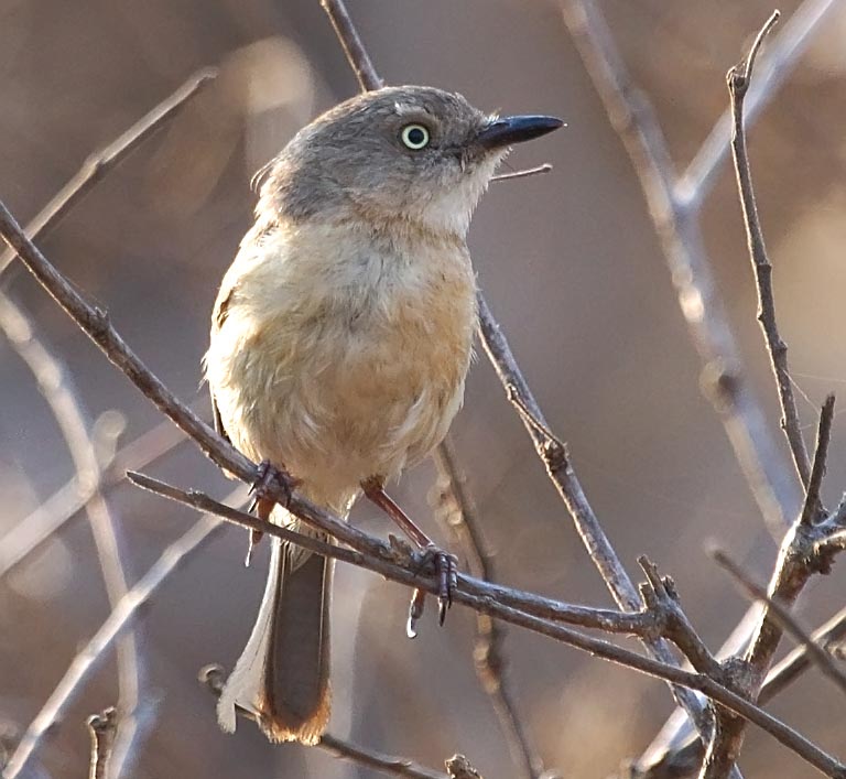 These are small plump birds, about 12 centimetres in length. They have slender bills and usually have a pale eye. Their plumage is mainly grey or brown, paler on the underparts. They have loud, repeated songs.