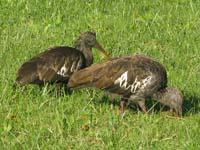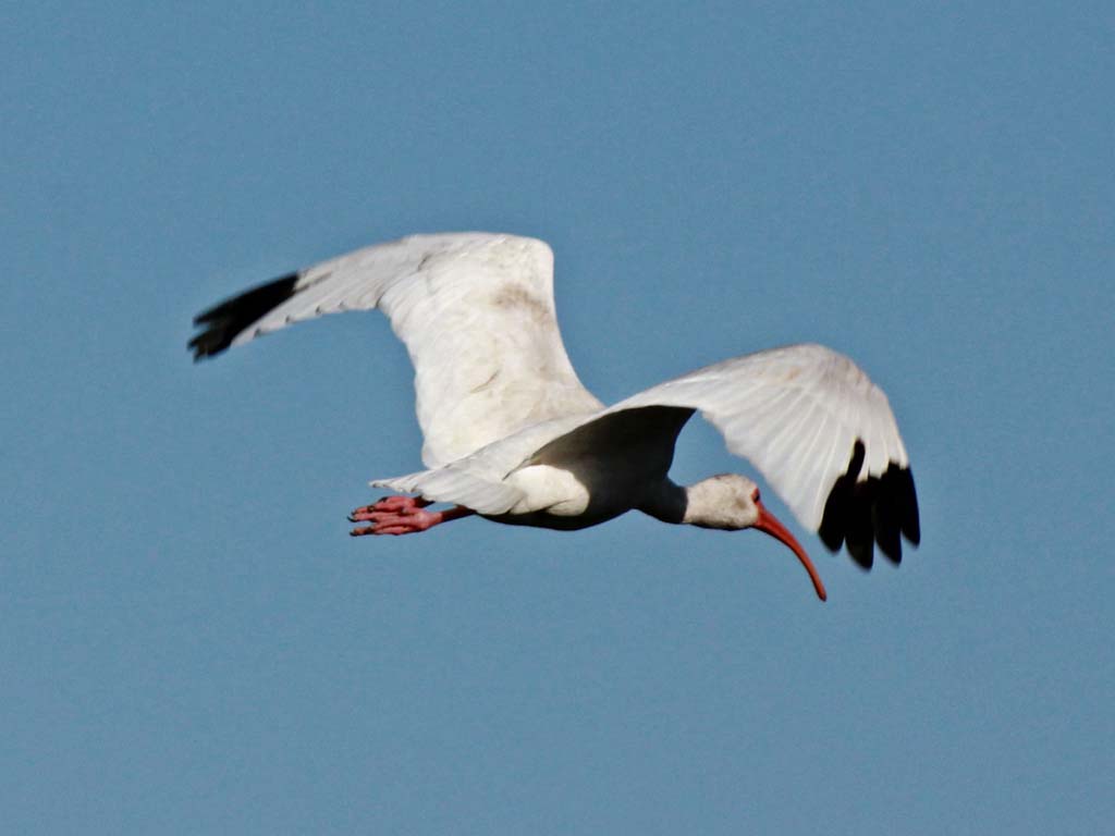 These ibis forage by probing with their long, down-curved beaks. Eats fish, frogs, crustaceans and insects. Flies with neck and legs outstretched, often in long, loose lines, especially on their way to or from the night-time roosts.