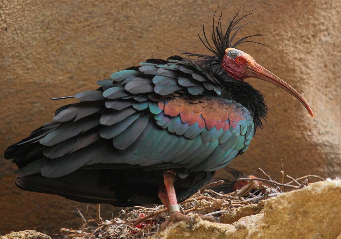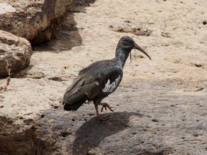 The bald ibis have blad heads which gives them a vulture like appearance. They also differ from other ibis by breeding on cliffs rather than trees and preferring arid locations to wetlands.